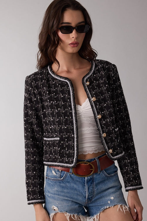 Tweed Plaid Jacket- Black