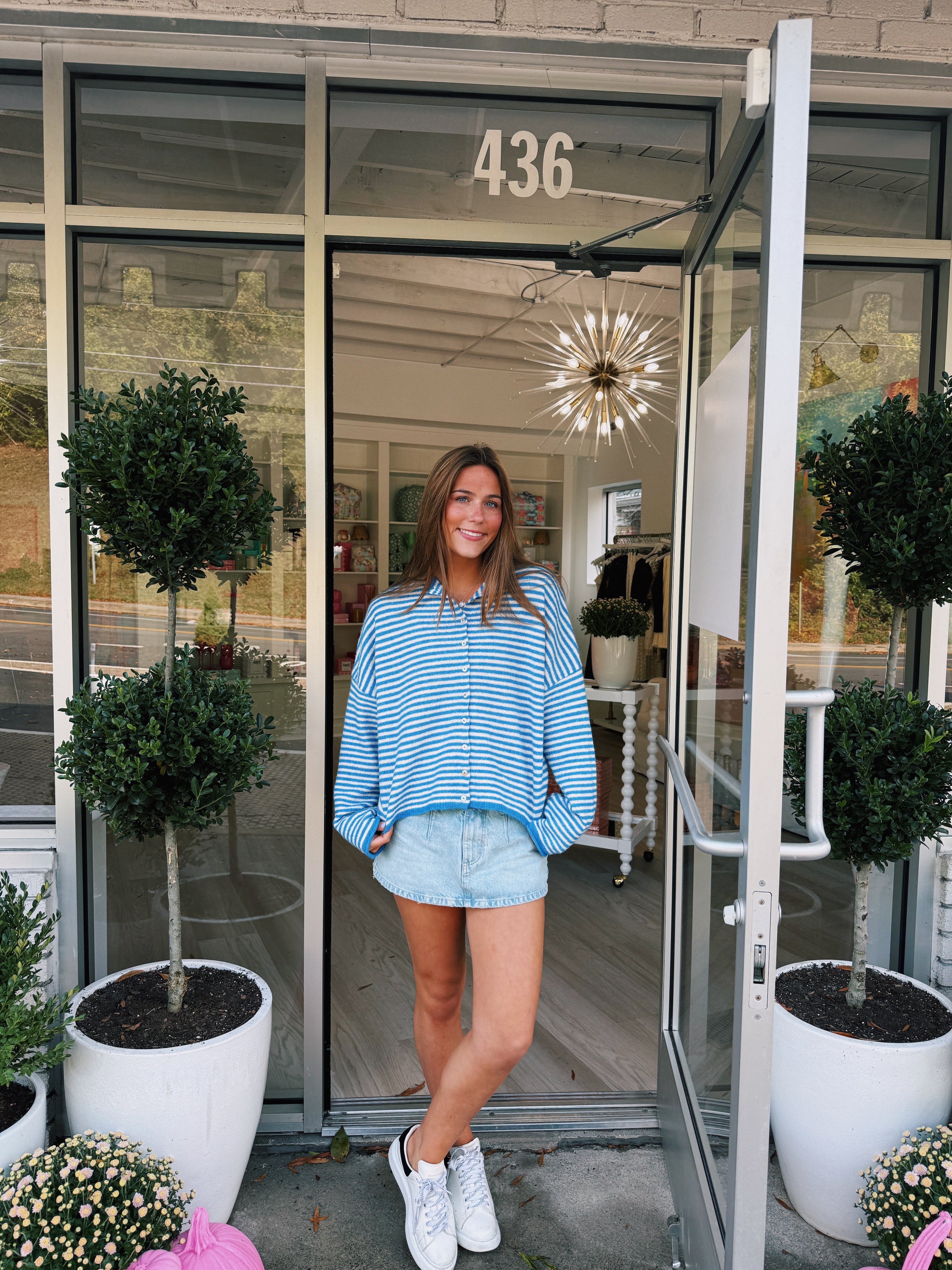 Cozy Cardigan- Blue Striped